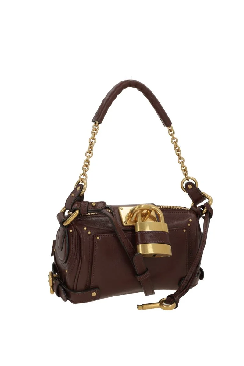 Chain bag by Chloe crafted from grained burnt brown leather. Featuring antique gold-tone hardware, zip closure, a chain shoulder strap, and an adjustable/removable crossbody strap. The interior is lined in black canvas. The design is completed with two external pockets, a decorative padlock with embossed logo, and side straps. Gender: Women Material: 100% LEATHER DOMESTIC ASIAN WATER BUFFALO GENUINE BUBALUS BUBALIS ITALY FARMED/MAIN LINING: 100% COTTON PAKISTAN CULTIVATION / PLANTATION/POCKET LINING: 100% LEATHER DOMESTIC CALF SPLIT SUEDE BOS TAURUS IRELAND FARMED Color: CRAFTY BROWN Made in: Italy Product ID: CH25WS803P7527M *Import tax/duty will be calculated at checkout (If applicable)