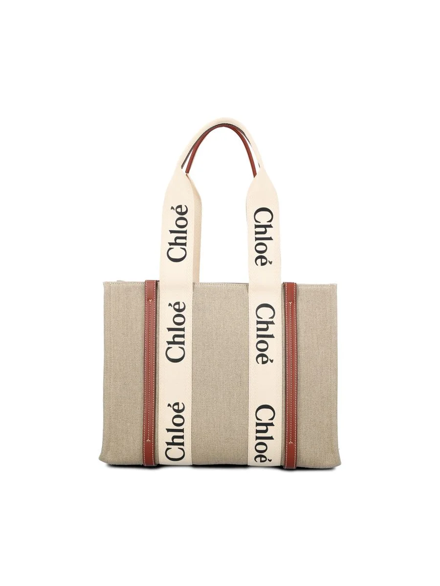 Chloé Women 'Medium Woody' Beige Handbag With Logo Lettering On The Front In Linen Woman