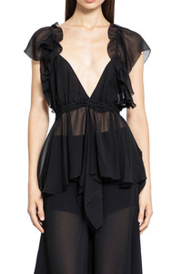 BLOUSE CHIFFON Gender: Women Material: TEXTILE/RUBBER Color: Black Made in: IT Product ID: CH24AHT41003 001 *Import tax/duty will be calculated at checkout (If applicable)