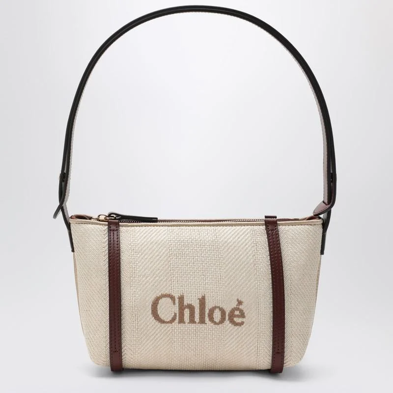 Chloe shoulder bag in sand-coloured jacquard cotton fabric, featuring a zip closure, contrasting vertical leather straps, embroidered logo lettering on the front, one flat internal pocket, and an adjustable shoulder strap. Gender: Women Material: 69% Cotton - 31% Polyamide / Details in calf leather Color: Beige Made in: Italy Product ID: CH25UP566P38/R_CHLOE-24P *Import tax/duty will be calculated at checkout (If applicable)