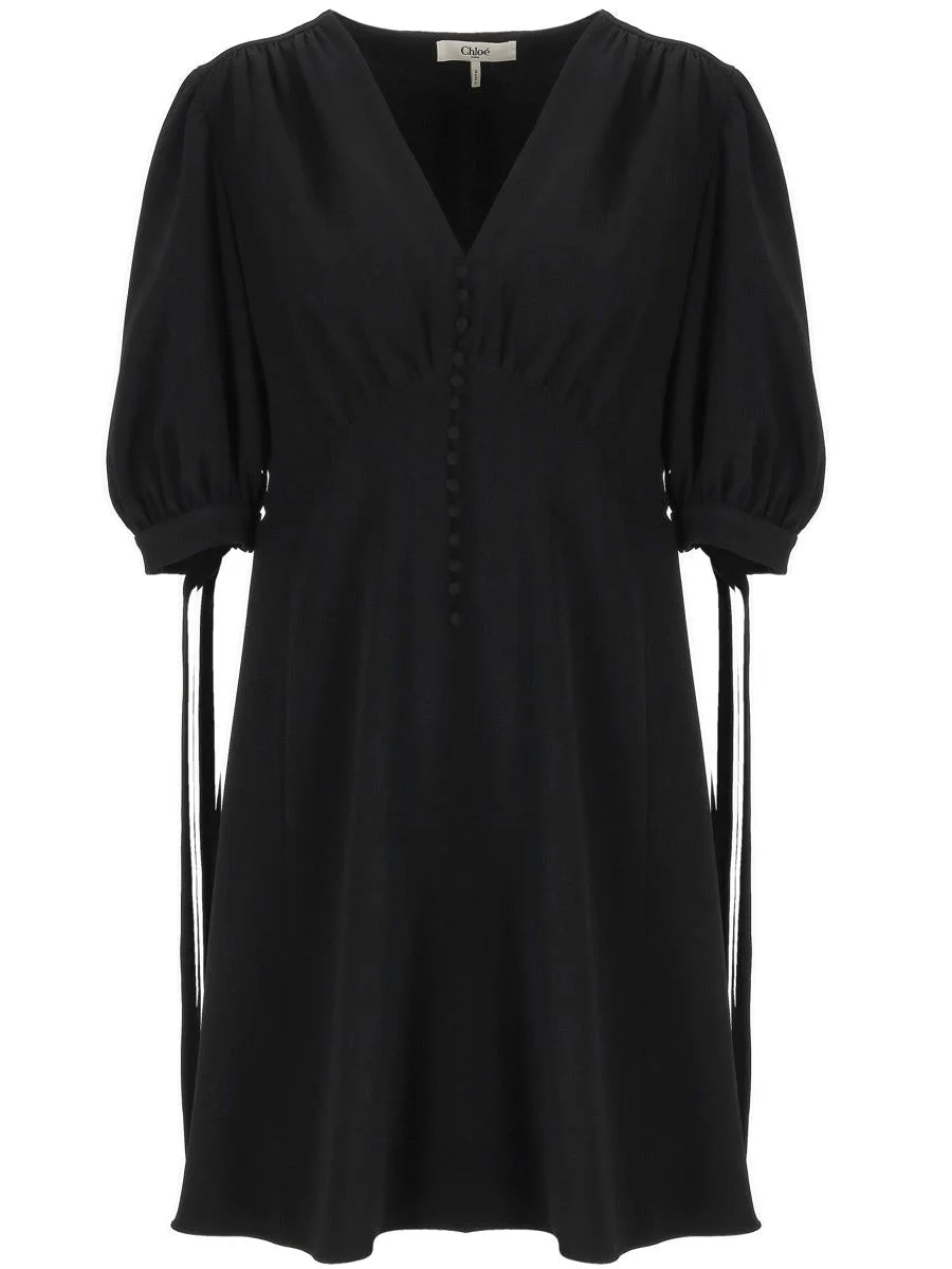 Chloe Black Dress, V-Neck, 3/4 Sleeves, Bow Detail, Buttons On The Front, Midi Model, EU SIZE (IT) Gender: Women Material: 50%ACETATE FIBER, 47%VISCOSE, 3%ELASTANE Color: Black Made in: IT Product ID: 25SRO49263001 *Import tax/duty will be calculated at checkout (If applicable)