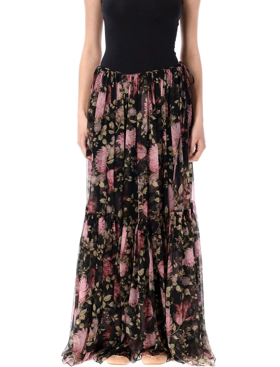 Silk Gathered maxi skirt by Chloe. Featuring: Hook & zip fastening Floral print allover Self-tie at side Separate skirt lining Floor length Model is 1,70 m and wears size 38 Gender: Women Material: 100% SILK LINING 68% ACETATE 32% SILK Color: BLACK FLOWER Made in: MG Product ID: 25PCH25UJU10459#001 *Import tax/duty will be calculated at checkout (If applicable)