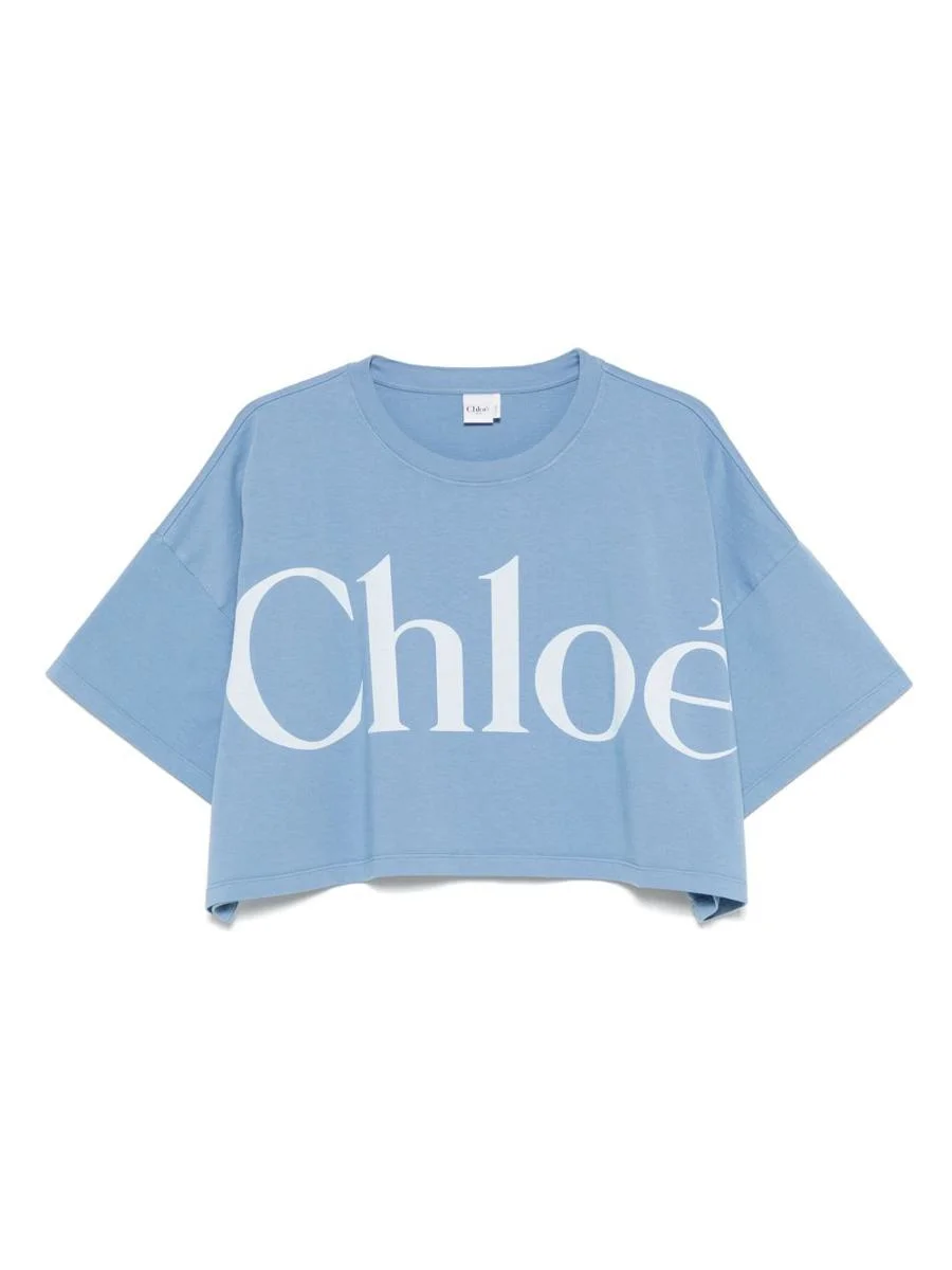 sky blue crew neck short sleeves cropped This piece fits true to size. We recommend you get your regular size Model is 1,75m / 5ft 8in wearing size S Gender: Women Color: CLEAR BLUE Made in: Italy Product ID: CH25AJH0918340Q *Import tax/duty will be calculated at checkout (If applicable)