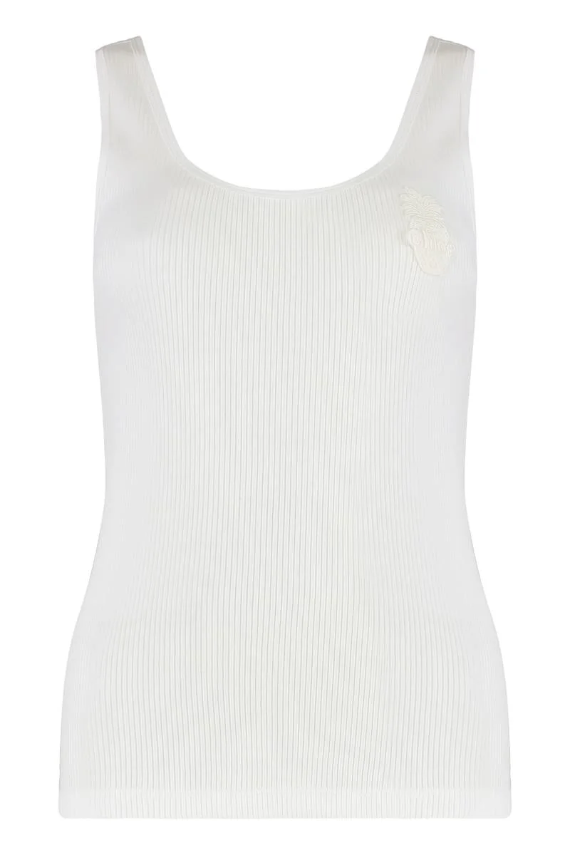 ribbed tank top Front logo patch 100% Cotton, 100% Polyester Gender: Women Material: COTTON Color: WHITE Made in: Portugal Product ID: CH25AJH12176_101 *Import tax/duty will be calculated at checkout (If applicable)