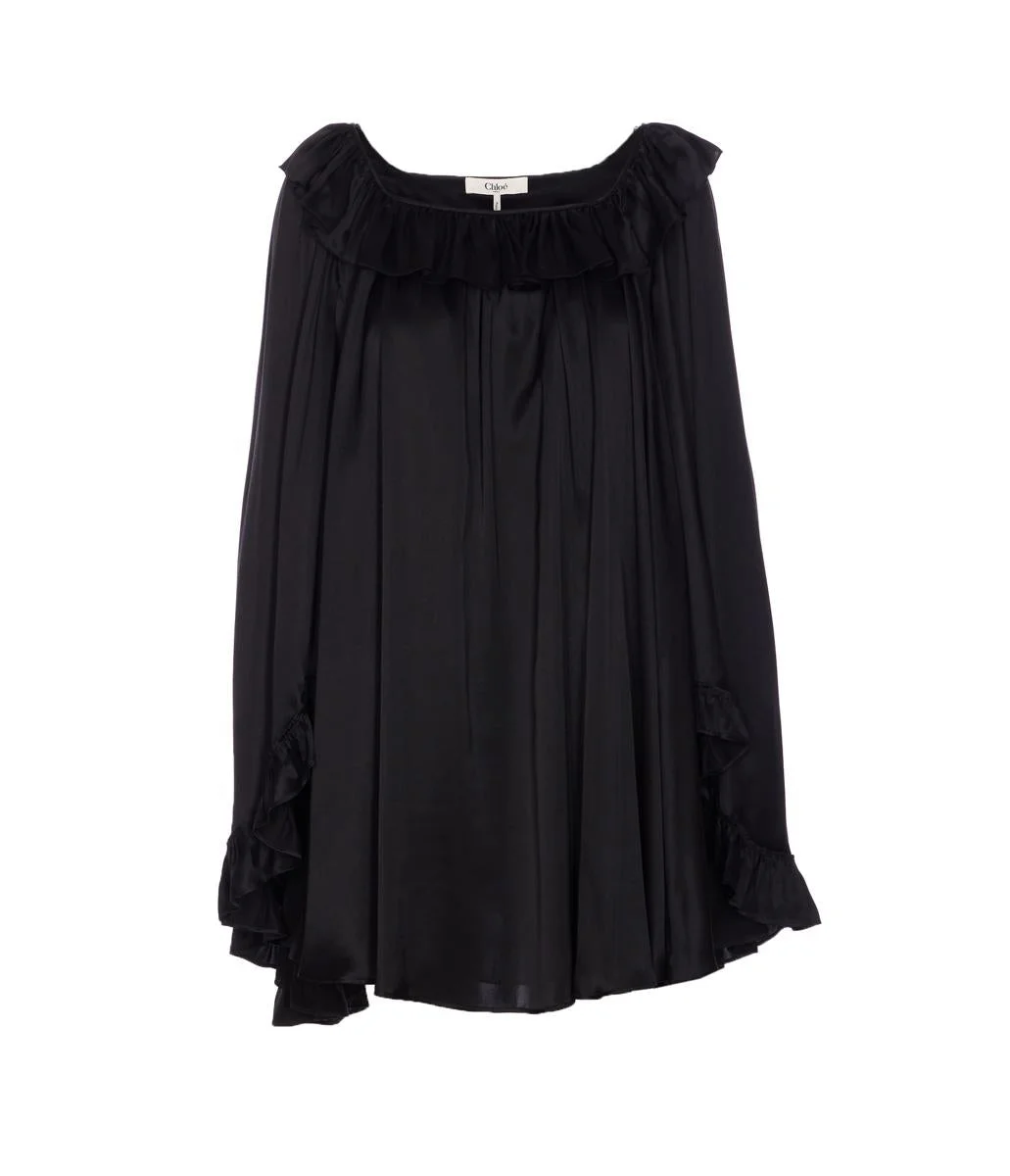 Chloe Black Ruffled Shirt, Long Sleeves, Oversize And Flare Fit, EU SIZE (FR) Gender: Women Material: 100% SILK, 68%ACETATE FIBER, 32%SILK Color: Black Made in: Imported Product ID: 25ARO12132001 *Import tax/duty will be calculated at checkout (If applicable)