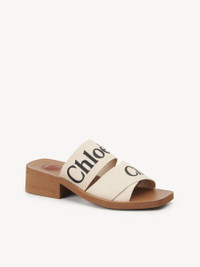 Chloé "Woody 45Mm" Slides In Linen And Leather