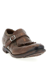 'Shanghai' vintage-effect leather loafers with houndstooth wool inserts, front fringes and buckle, leather and rubber sole Gender: Men Material: 100% CALFSKIN LEATHER Color: BROWN Made in: Italy Product ID: EOG001FG000009ABRF0AAR *Import tax/duty will be calculated at checkout (If applicable)