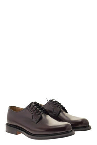 The Shannon is an exquisite exemplar of artisanal expertise. Popular since its inception in 1970, this clean and classic whole cut derby is crafted from a single piece of leather which requires the highest quality hide, completely free of marks and flaws. Smooth and sleek, the Shannon’s unblemished upper is punctuated with artisanal subtleties - hand-stitches are applied by specialised craftsmen to form a half moon motifs to the eyestay while a chunky, storm-welted double sole, rounded toe and glossy polished binder finish complete an aesthetic that is both elegant and practical. - Plain lace-up derby blucher with hand stitching to eyestay - Whole cut leather with polished binder finish - Half moon stitching detail to eyestay - Nappa bellow tongue - Leather laces -Blind eyelets - Internal lining for longevity of wear - Handwritten shoe info to lining - Goodyear construction with storm welt - Church’s crest to sock and sole DESIGNER ID: EEB001 9XV F0ADY Gender: Men Material: UPPER: LEATHER LINING: LEATHER SOLE: LEATHER Color: Red Made in: GR Product ID: EEB001 9XV F0ADY *Import tax/duty will be calculated at checkout (If applicable)