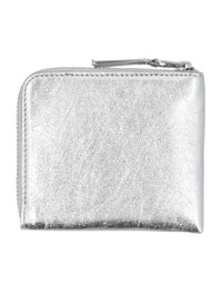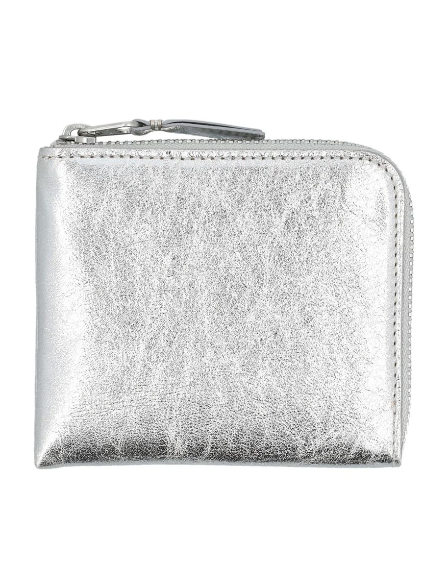 Smooth leather Classic small zip wallet by Comme Des Garcons Wallet. Featuring: Zip around closure Main compartment with inner pocket Height: 10,5cm Width: 9,5cm Depth: 1,5cm Gender: Women Material: 100% COWHIDE Color: SILVER Made in: Spain Product ID: 25ASA3100G#2 *Import tax/duty will be calculated at checkout (If applicable)