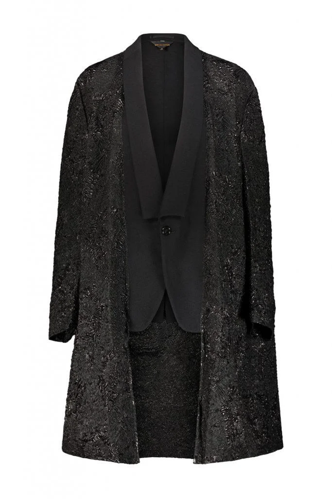 Comme des Garçons double-layered jacket composed as a classic tailored blazer with an overlayer in textured fabric Gender: Women Material: 100% WOOL 39% ACETATE 26% SILK 18% NYLON 17% POLYESTER Color: BLACK Made in: JAPAN|JP Product ID: GHJ020W21 *Import tax/duty will be calculated at checkout (If applicable)