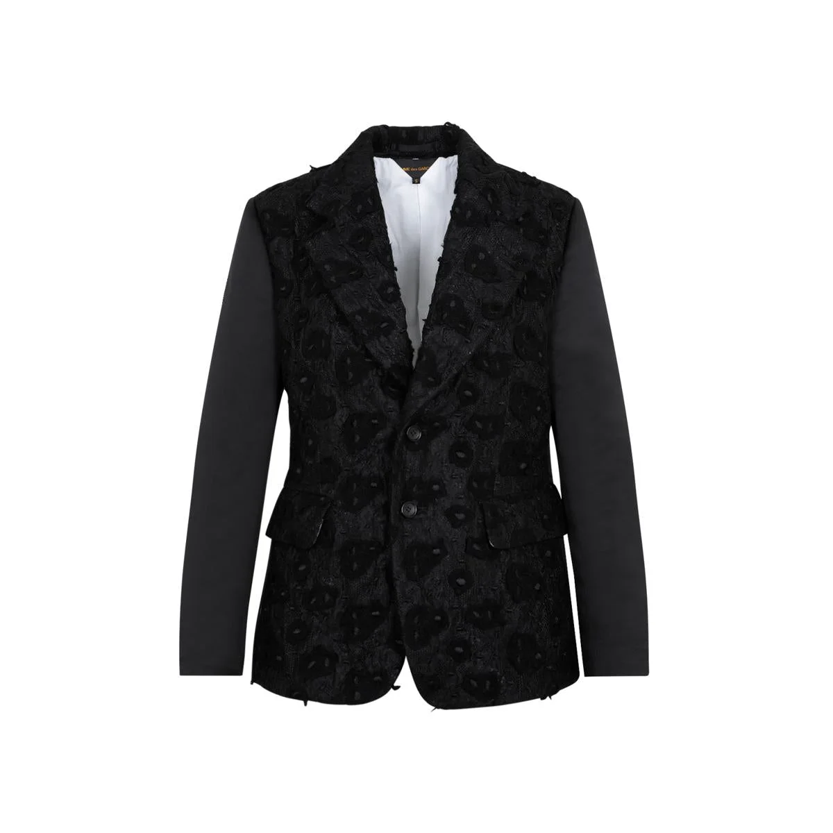 Comme Des Garcons Black Jacket. Crafted in black wool with a tridimensional jacquard front panel. Notched neckline, long sleeves, buttoned cuffs, front button fastening, back vent, two front flap pockets, rounded hem, lined. Gender: Women Material: 90%WOOL 10%DECORATION Color: Black Made in: JP Product ID: GKJ018S23_1 *Import tax/duty will be calculated at checkout (If applicable)