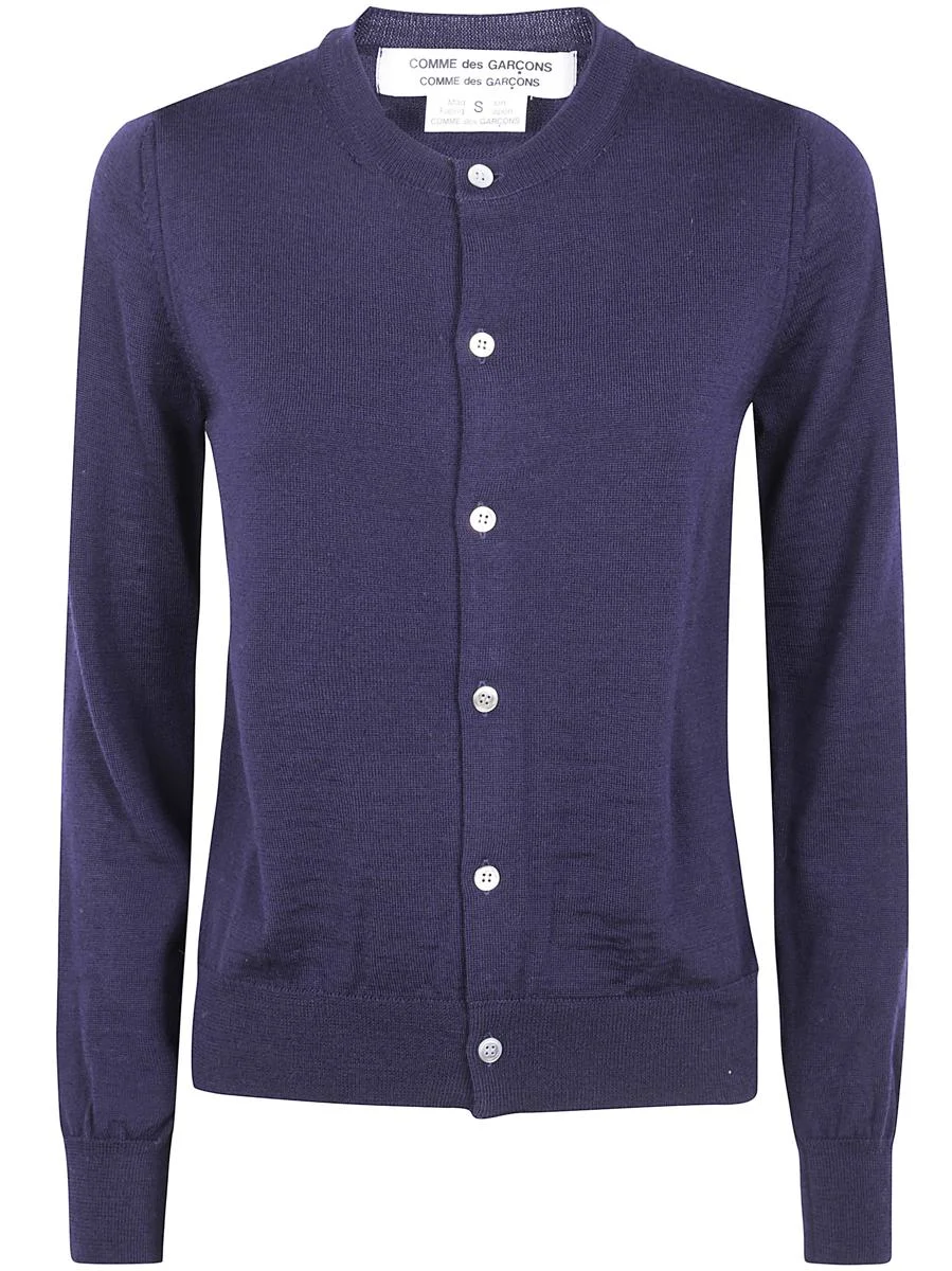 Comme Des Garcons Roundneck Cardigan Clothing Gender: Women Material: WOOL | 100% WOOL Color: BLUE Made in: Imported Product ID: RP.N509_0512 *Import tax/duty will be calculated at checkout (If applicable)