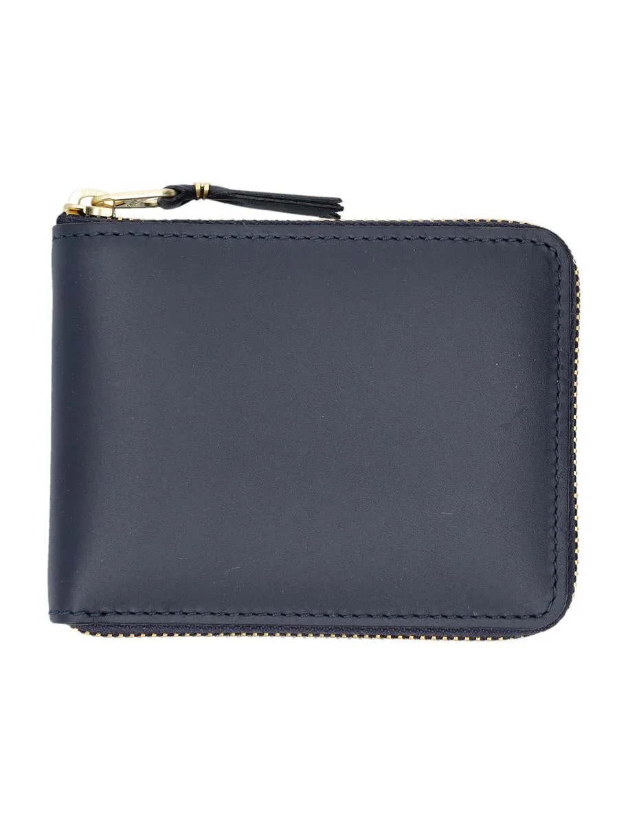 Smooth leather Small zip around wallet by Comme Des Garcons Wallet. Featuring: Gold-tone zip around fastening Interior card slots Interior coin case Interior logo print Height: 8,5cm Width: 11cm Depth: 2cm Gender: Women Material: 100% COWHIDE Color: NAVY Made in: Spain Product ID: 25ASA7100#4 *Import tax/duty will be calculated at checkout (If applicable)