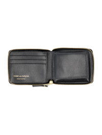 Smooth leather Small zip around wallet by Comme Des Garcons Wallet. Featuring: Gold-tone zip around fastening Interior card slots Interior coin case Interior logo print Height: 8,5cm Width: 11cm Depth: 2cm Gender: Women Material: 100% COWHIDE Color: Black Made in: Spain Product ID: 25ASA7100#1 *Import tax/duty will be calculated at checkout (If applicable)