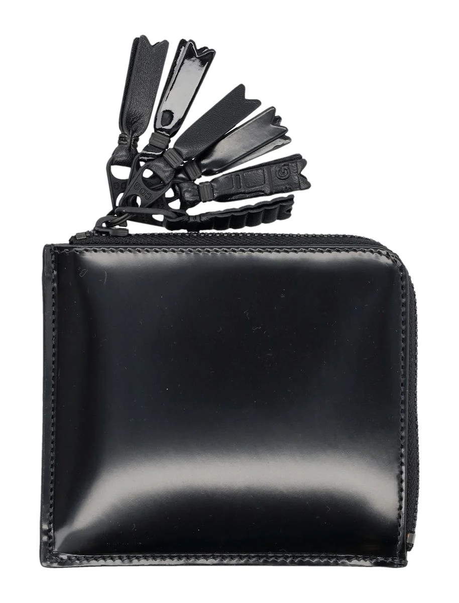 Small zip wallet by Comme Des Garcons. Featuring: Zip-around closure with multiple charms Interior card slots Interior bill compartment Colour of zip will fade with friction and use Height: 11cm Width: 12,5cm Gender: Women Material: 100% COW HIDE Color: Black Made in: Spain Product ID: 25ASA3100ZM#1 *Import tax/duty will be calculated at checkout (If applicable)