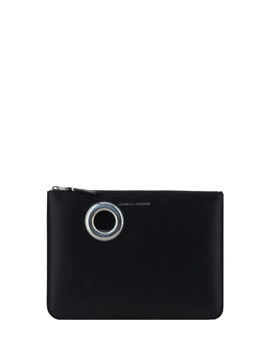 SILVER EYELET LEATHER COMME DES GARCONS WALLET, METAL EYELET DECORATION, TOP ZIPPER CLOSURE, SINGLE INTERIOR COMPARTMENT. UNI Height: 16 cm, Length: 21.5 cm Gender: Men Material: CALF LEATHER BOS TAURUS Color: Black Made in: ES Product ID: SA5100SE_1 *Import tax/duty will be calculated at checkout (If applicable)