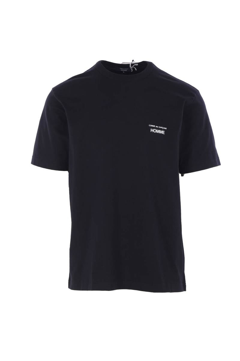 Comme des Garcons Homme t-shirt made from black cotton jersey with logo print on the chest. Features a crew neckline, short sleeves, and straight hem. Gender: Men Material: COTTON 100% Color: Black Made in: Imported Product ID: HPT101W251BLACK *Import tax/duty will be calculated at checkout (If applicable)