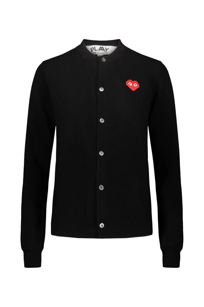 COMME DES GARÇONS PLAY BLACK CARDIGAN WITH RED PIXELATED HEART CLOTHING