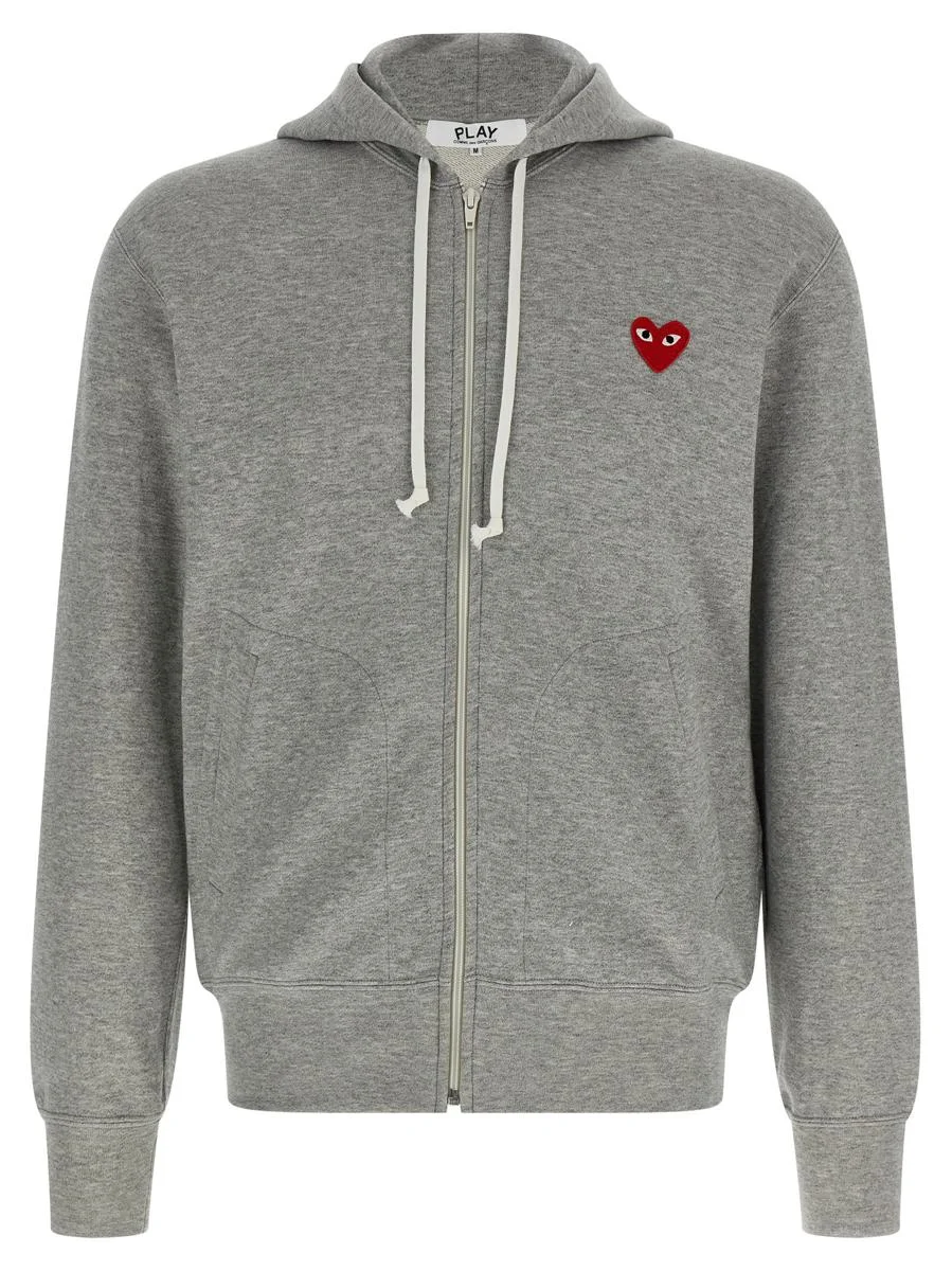 - Grey Comme Des Garçons cotton sweatshirt for man - Hood with drawstrings - Long sleeves - Elastic ribbed trims - Front zip fastening - Two side slit pockets - Front contrasting color embroidered logo Model's height is 190 cm and he wears a size L Gender: Men Material: 100% COTTON Color: GREY Made in: JP Product ID: AXT1681 *Import tax/duty will be calculated at checkout (If applicable)