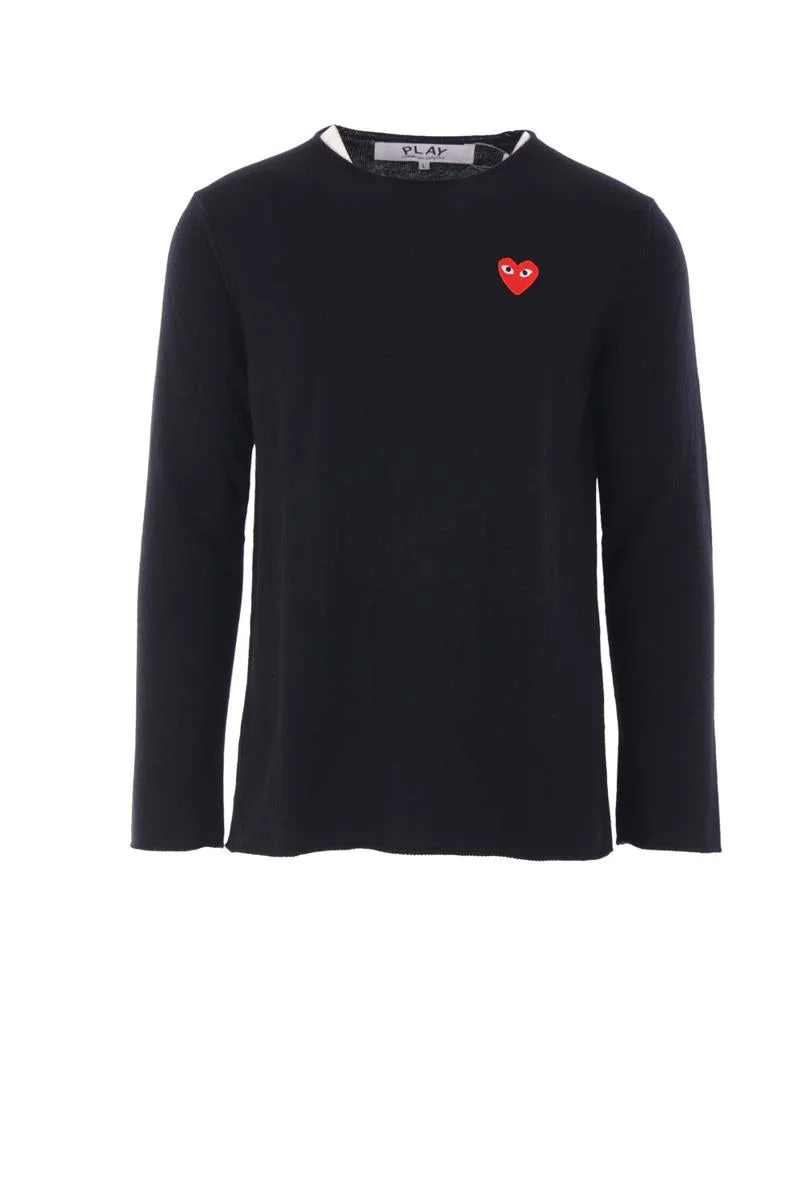 Comme des Garcons Play sweater made of black wool knit with an embroidered Heart patch on the chest. Featuring a crew neckline, long sleeves, and a straight hem. Gender: Women Material: 100% WOOL Color: Black Made in: Imported Product ID: AXN0680511BLACK *Import tax/duty will be calculated at checkout (If applicable)