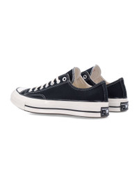 A timeless classic, the Converse Chuck 70 OX reinterprets the iconic silhouette with premium details and enhanced comfort. Crafted in black canvas with a rounded toe and rubber toe cap, they feature metal eyelets and a lace-up front. The flat rubber sole ensures stability and durability, making them ideal for everyday wear. Black canvas low-top sneakers Rounded toe with rubber toe cap Front lace-up fastening Metal eyelets Durable flat rubber sole Size Reference: MEN Unisex Fit: This product follows the Men's size chart. For accurate sizing, please contact our customer support team Gender: Unisex Material: 100% TEXTILE Color: Black Made in: Imported Product ID: 25A162058C#001 *Import tax/duty will be calculated at checkout (If applicable)