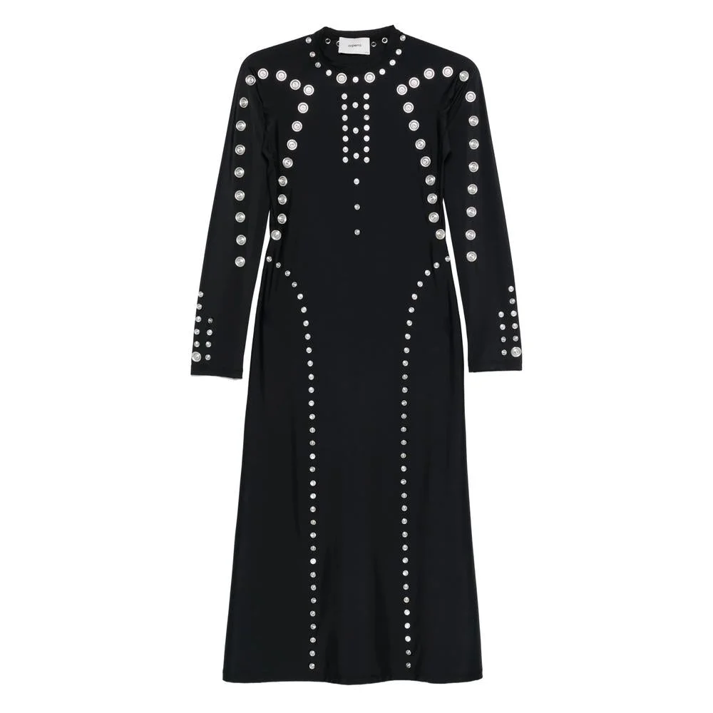 Black long sleeves round neck metallic embellishments straight skirt centre-front seam Gender: Women Material: POLYAMIDE: 78.0%, ELASTANE: 22.0% Color: Black Made in: Portugal Product ID: COPR232F5021 BLK *Import tax/duty will be calculated at checkout (If applicable)
