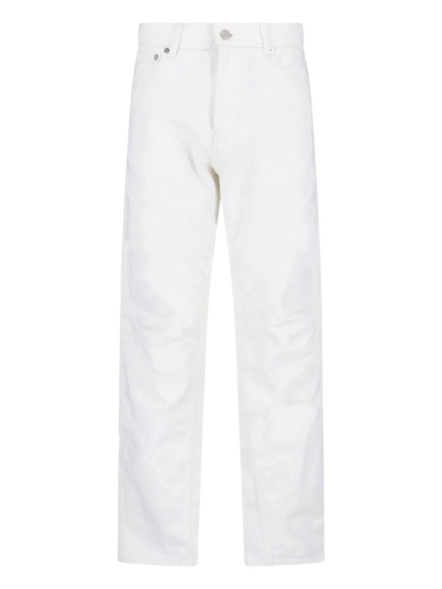 STRAIGHT JEANS WHITE ORGANIC COTTON DENIM HOODS, MID WAIST, ZIP AND BUTTON CLOSURE, BELT LOOPS, FIVE POCKET DESIGN, CONTRAST STRAP DETAIL AND SILVER METAL LOGO ON THE BACK POCKET, STRAIGHT LEG. PRODUCT INFO PRODUCT CODE COPP171F2054WWHT COMPOSITION: 100% ORGANIC COTTON SIZE AND FIT: REGULAR FIT MADE IN: PORTUGAL - PRODUCT MADE FROM ORGANIC MATERIALS