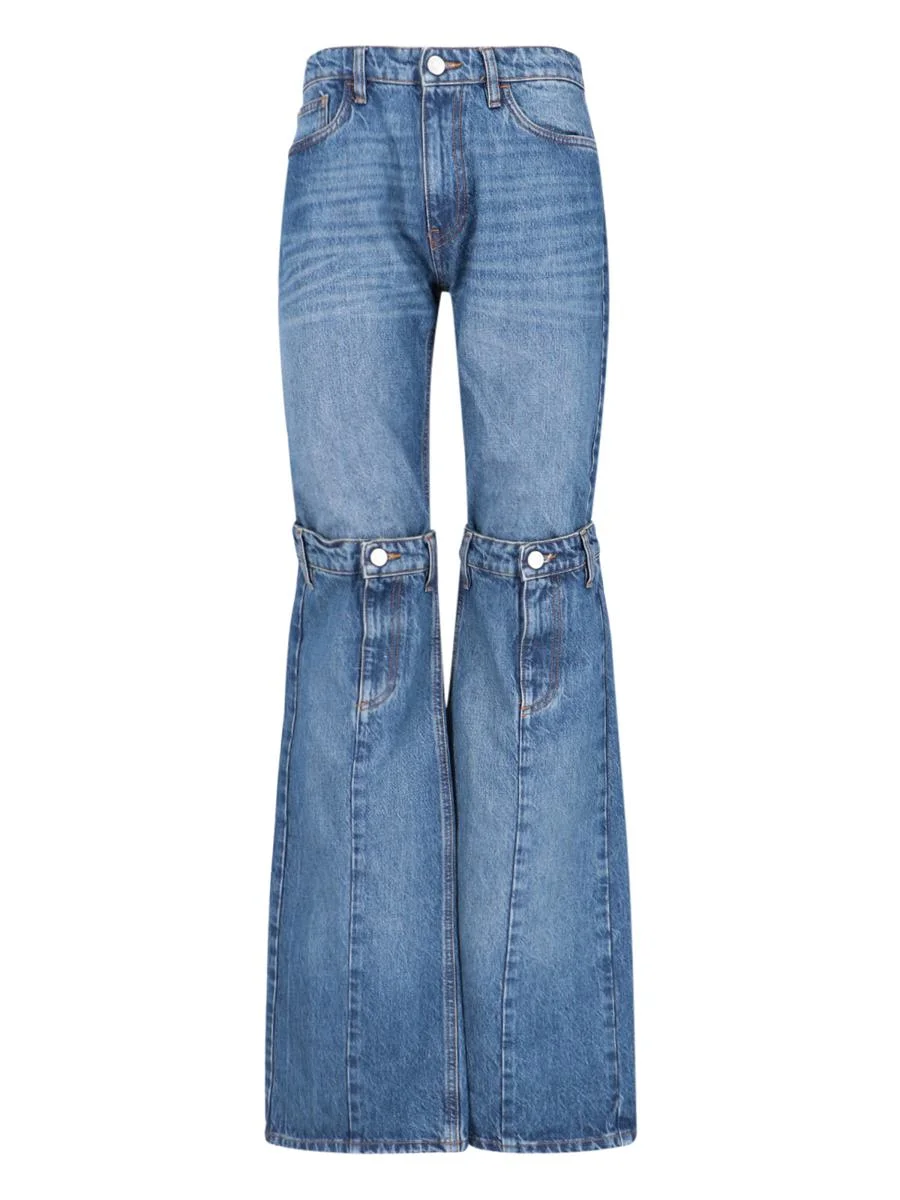 'Open Knee' cotton denim jeans with zip and button closure, five pockets, half-leg cut-out detail, wide leg Gender: WOMEN Material: 100% COTTON Color: BLUE Made in: IT Product ID: COPP55252BLUE *Import tax/duty will be calculated at checkout (If applicable)
