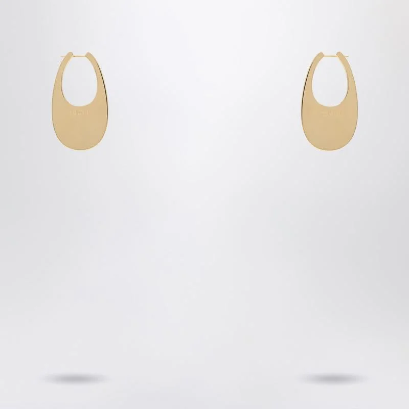Coperni earrings in gold-plated brass, featuring a lever closure for pierced lobes, oval design, and engraved logo lettering. Gender: Women Material: 100% Brass Color: METAL Made in: IT Product ID: COPBI01725MET/Q_COPE-GOLD *Import tax/duty will be calculated at checkout (If applicable)