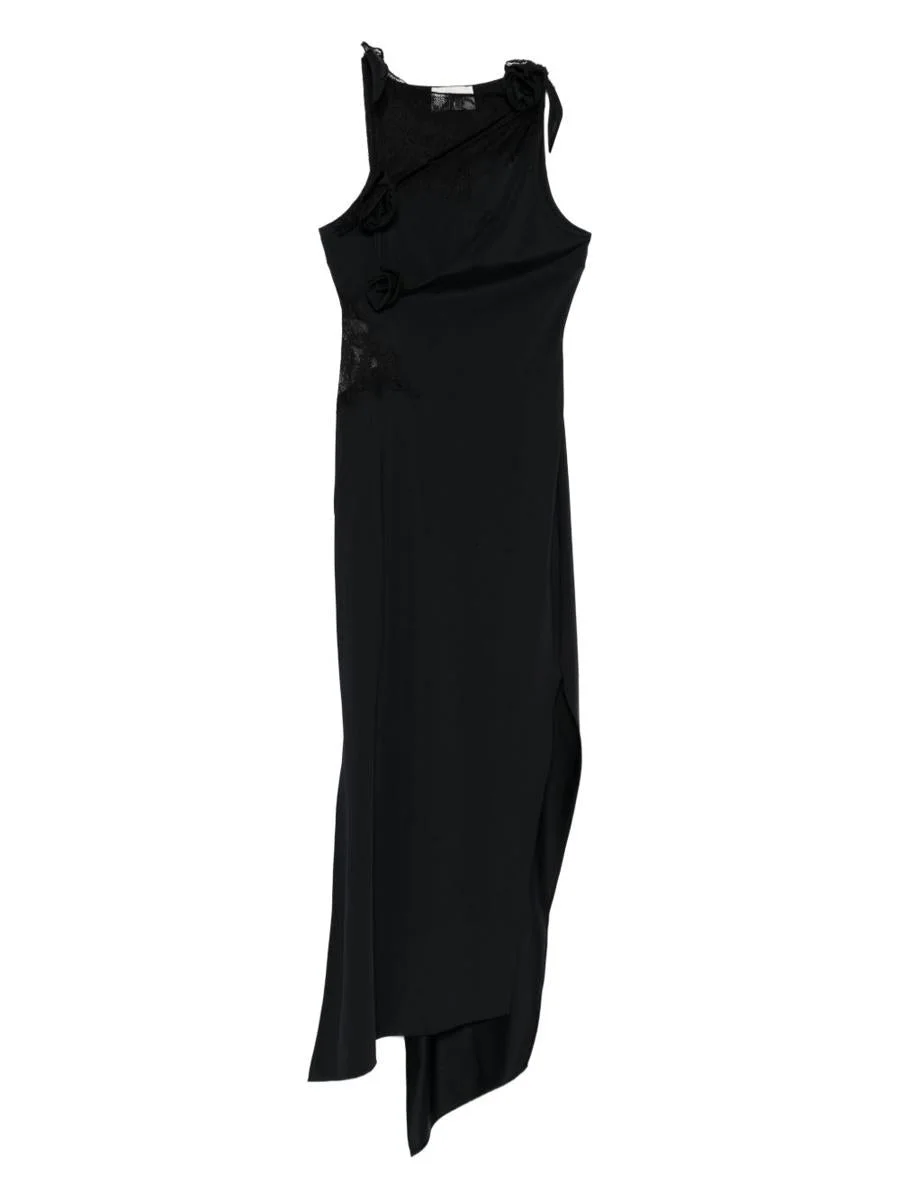 Asymmetric neckline; knot at right shoulder, knotted fabric flower at left shoulder Diagonal cut-out detail at front; knotted fabric flowers detail at front Front ruched detailing at top Tone-on-tone lace inserts at neckline, top and at waist Side slit Asymmetric hemline Black color 78% Polyamide, 22% Elastane Made in France Gender: Women Material: 78% POLYAMIDE, 22% ELASTANE Color: Black Made in: Imported Product ID: COPR217F5021BLK *Import tax/duty will be calculated at checkout (If applicable)