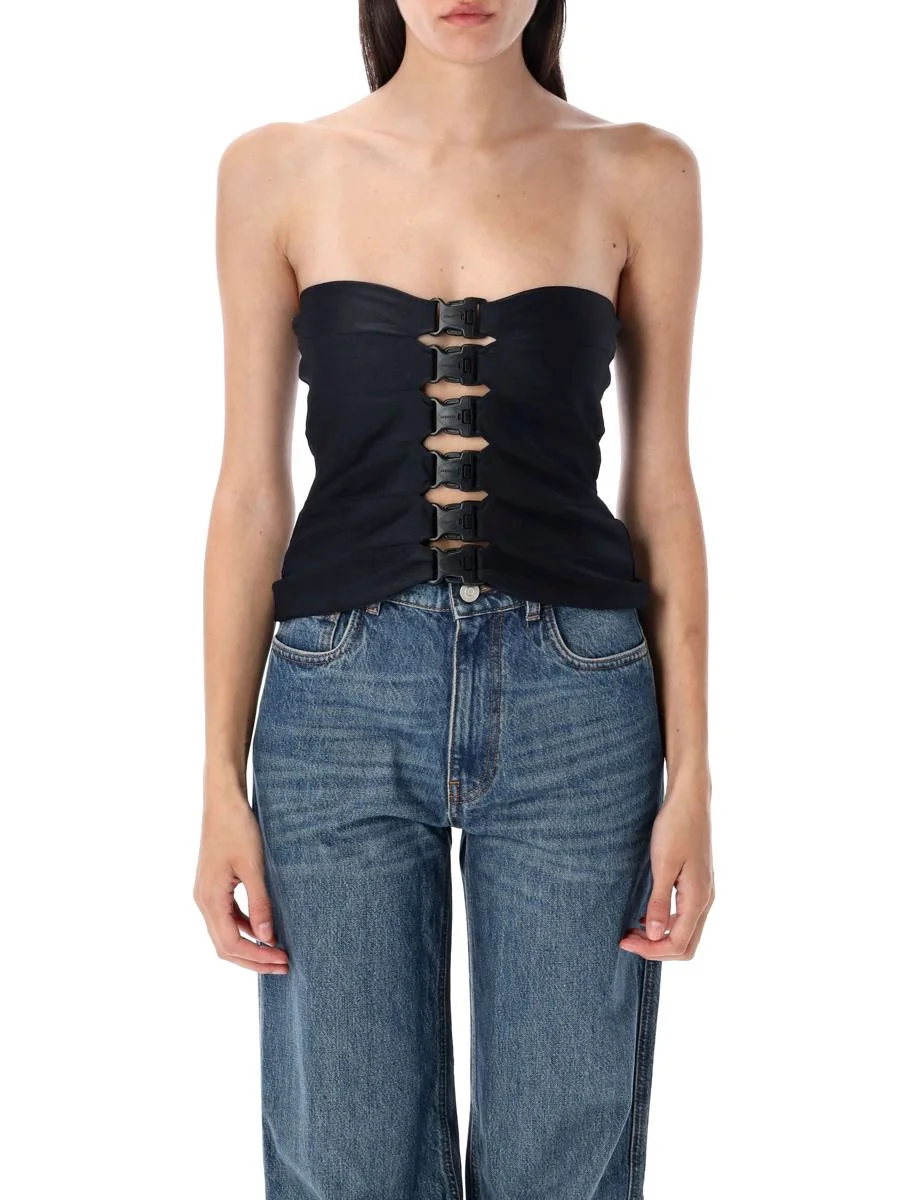 Multi buckle top by Coperni. Featuring: Stretch shiny fabric Strapless Matte multi buckle at front Cropped Ticght fit Model is 1,70 mt and wears size S Gender: Women Material: 80% POLYAMIDE 20% ELASTANE Color: Black Made in: Portugal Product ID: 25ACOPT99F5001#BLK *Import tax/duty will be calculated at checkout (If applicable)