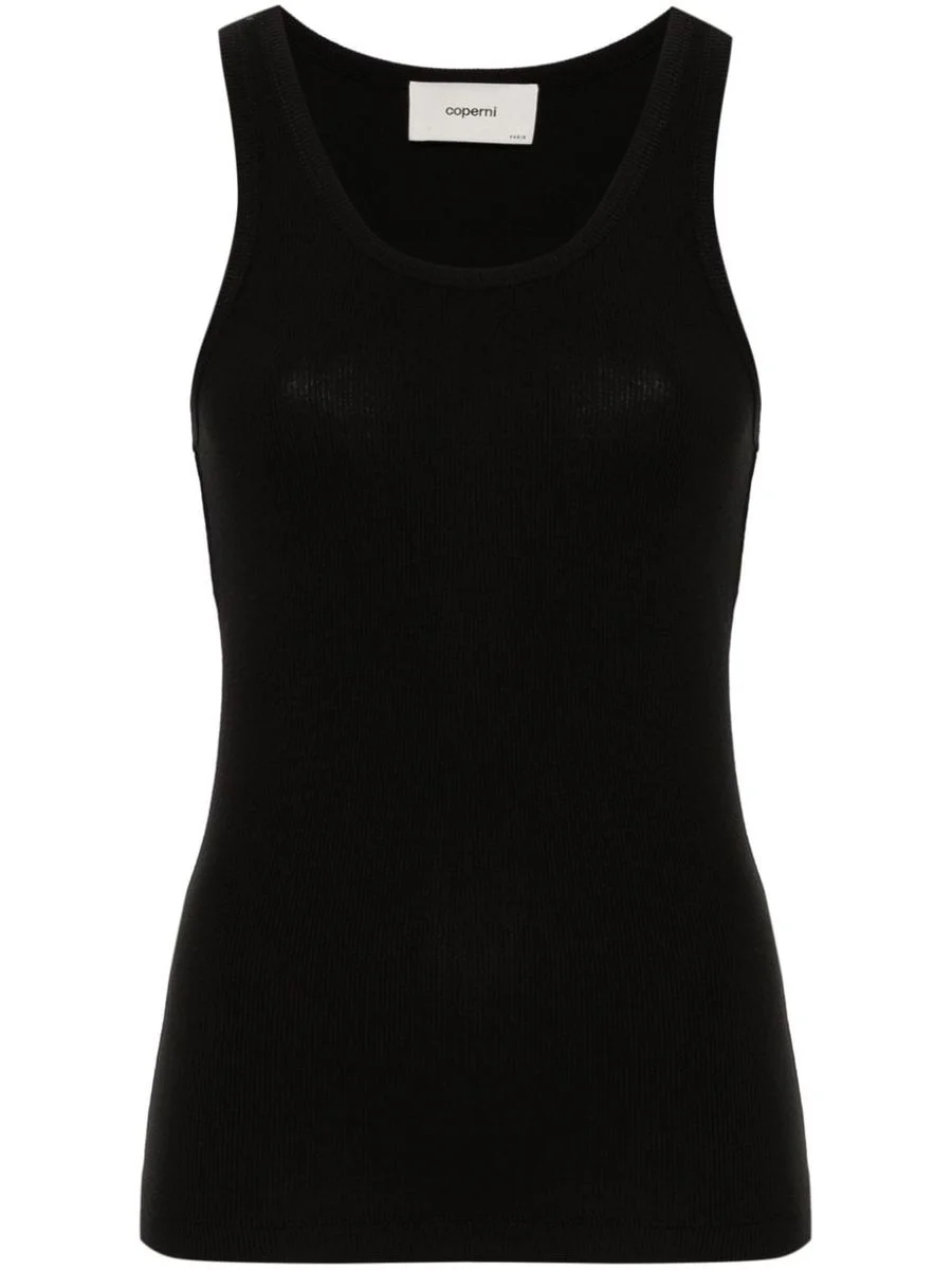 - Black Coperni viscose top for woman - Round neck - Sleeveless - Front tone on tone embroidered logo Model's height is 179 cm and she wears a size S Gender: Women Material: 97% VISCOSE 3% ELASTANE Color: Black Made in: PT Product ID: COPJS12F5006BLK *Import tax/duty will be calculated at checkout (If applicable)