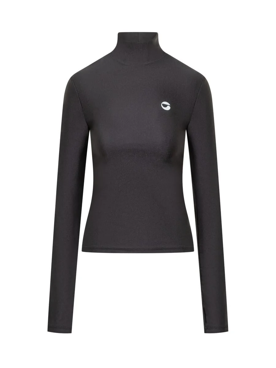 Long-sleeved top. High collar. Logo printed on the front. Gender: Women Material: 80% POLYAMIDE 20% ELASTANE Color: Black Made in: PT Product ID: COPJS20545 BLACK *Import tax/duty will be calculated at checkout (If applicable)