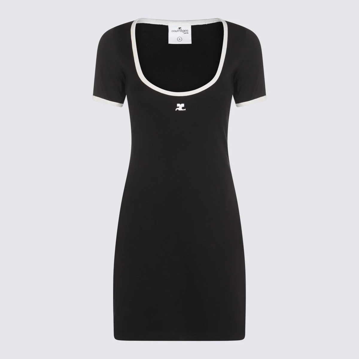Black cotton mini dress from Courreges featuring short sleeves, round collar, frontal logo, mini length and regular vestibility. Size Type: AMERICA Gender: Women Material: 100% COTTON Color: BLACK/HERITAGE WHITE Made in: Portugal Product ID: 225JRO600JS02039901 *Import tax/duty will be calculated at checkout (If applicable)