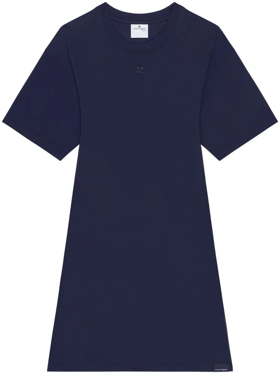 Highlights navy blue embroidered logo to the front fitted waistline crew neck drop shoulder Composition Cotton 100% Gender: Women Color: NAVY Made in: Imported Product ID: 125JRO537JS0107 7075 NAVY *Import tax/duty will be calculated at checkout (If applicable)