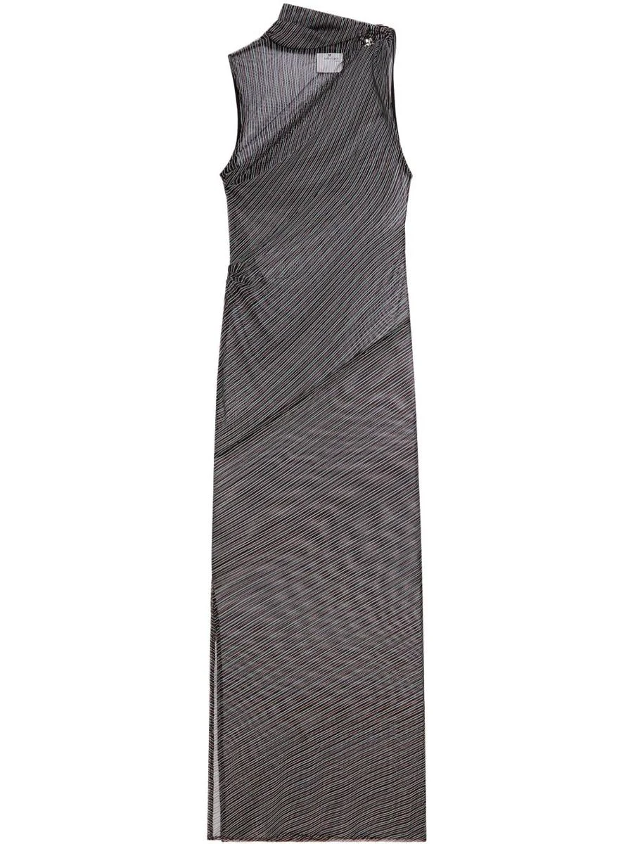 black slip-on style diagonal stripe pattern silver-tone logo plaque sleeveless Gender: Women Material: POLYAMIDE 100% Color: Black Made in: Italy Product ID: 125JRO591PR0099 B087 *Import tax/duty will be calculated at checkout (If applicable)