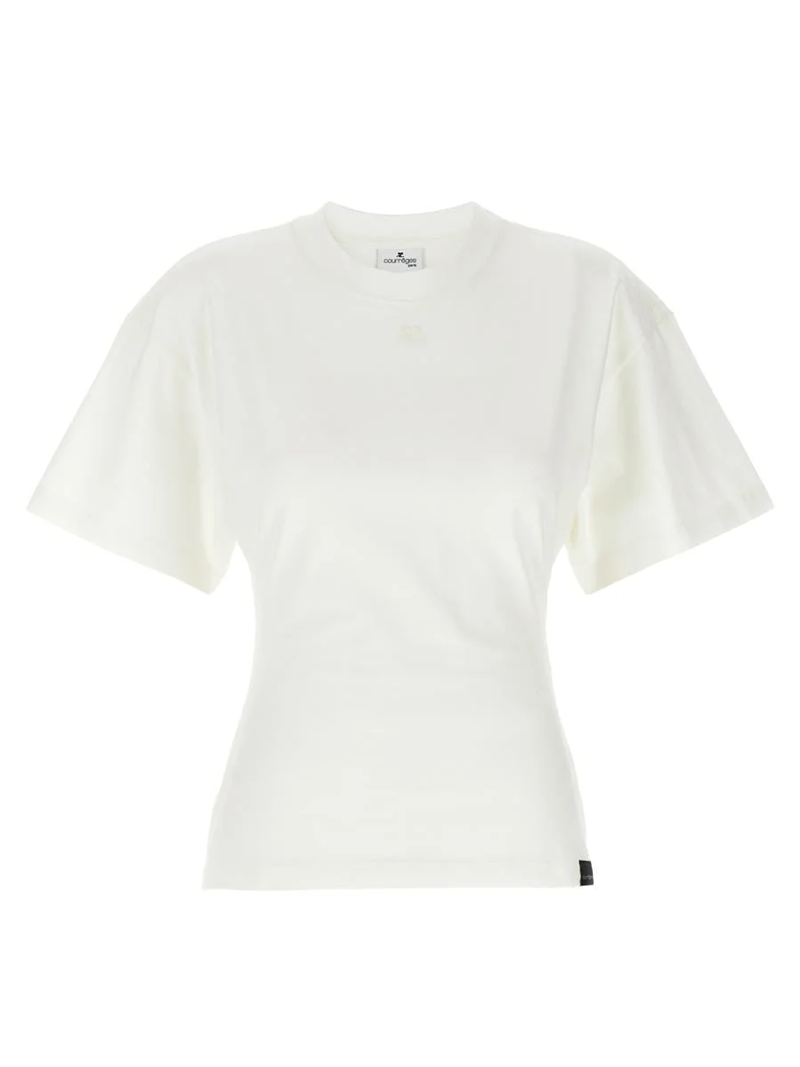 'Fitted' cotton T-shirt with embroidery and front logo patch, crew neck, flared short sleeves, tight waist Gender: Women Material: 100% COTTON Color: WHITE Made in: Portugal Product ID: 125JTS168JS01070001 *Import tax/duty will be calculated at checkout (If applicable)