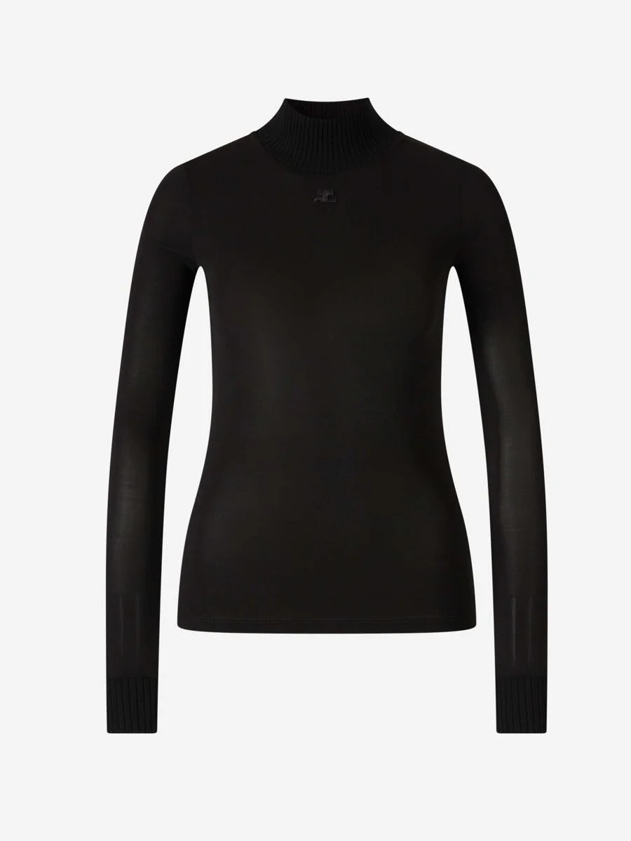High Neck TopTop By Courreges• Ribbed cuffs and collar• Embroidered AC logo on the front• Crafted in a stretch viscose fabric• Long sleeveComposition: 95% Viscose, 5% ElastaneMade in: France Gender: Women Material: 95% VISCOSE, 5% ELASTANE Color: Black Made in: Imported Product ID: PERJTO029JS0115_9999BLACKBLACK *Import tax/duty will be calculated at checkout (If applicable)