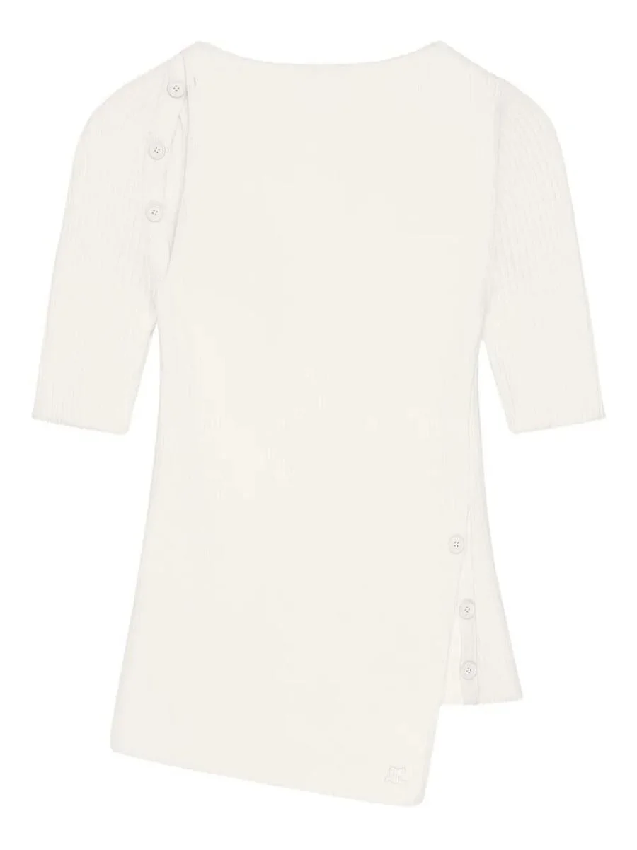 Oblique Buttoned Knit Top white