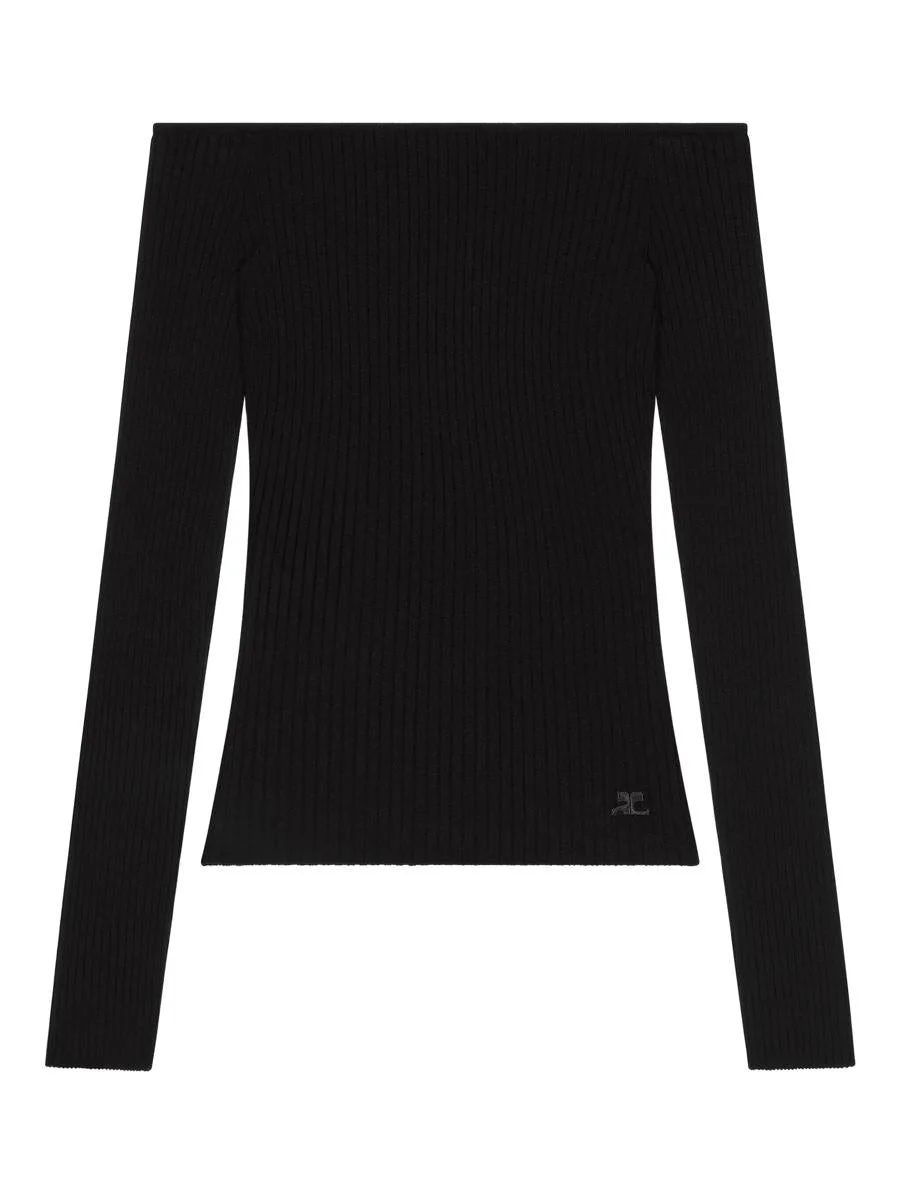 Courrèges Off Shoulder Rib Knit Top Clothing