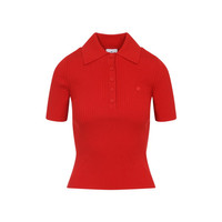 Courreges Signature Red Viscose Polo. Crafted from red ribbed viscose blend, polo collar, half-placket with button fastening on the front, embroidered logo on the chest, short sleeves, straight hem. Gender: Women Material: 70%VISCOSE 30%POLYESTER Color: RED Made in: Portugal Product ID: 125MPO029FI0001_4040 *Import tax/duty will be calculated at checkout (If applicable)