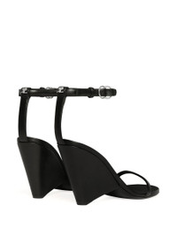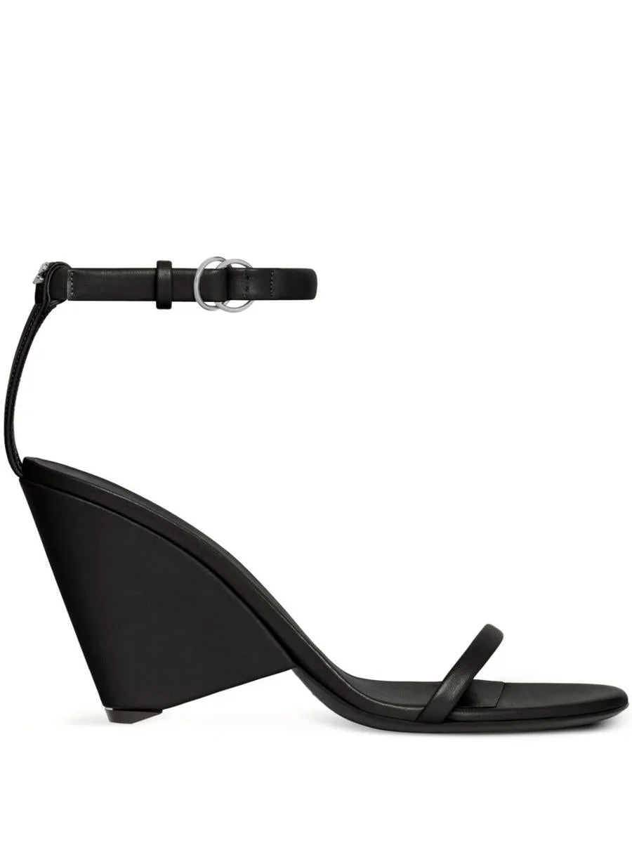 black buckle-fastening ankle strap silver-tone logo plaque round open toe wedge heel Gender: Women Material: OUTER LEATHER 100 % ; LINING LEATHER 100% ; SOLE LEATHER 100% Color: Black Made in: Italy Product ID: 225SSD038AG0030 9999 *Import tax/duty will be calculated at checkout (If applicable)