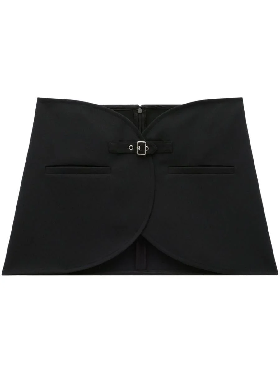 black twill weave buckle-strap fastening two front welt pockets curved hem concealed rear zip fastening thigh-length Gender: Women Material: POLYESTER 83% ACETATE 17% Color: Black Made in: Imported Product ID: 124CJU143PL0007 9999 *Import tax/duty will be calculated at checkout (If applicable)