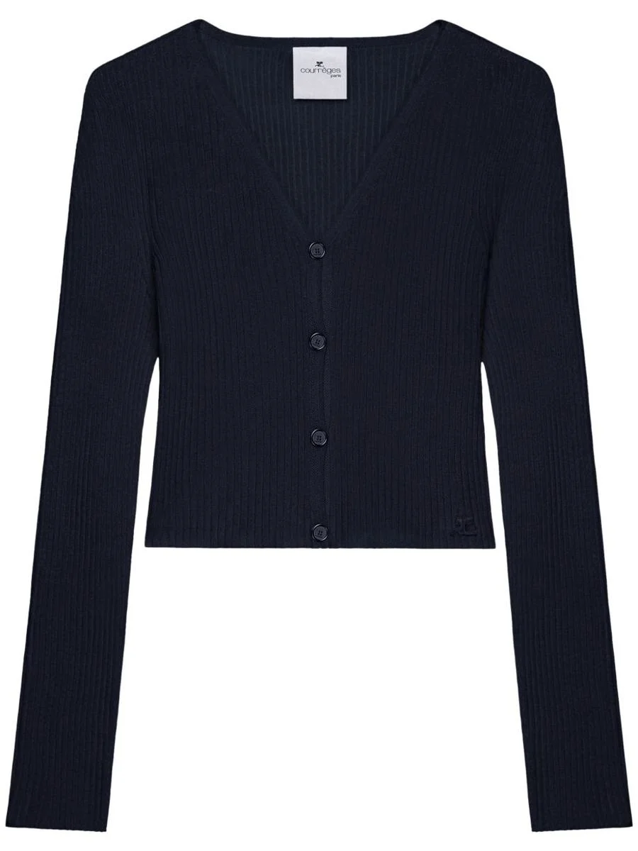 navy blue front button fastening applique logo V-neck long sleeves Gender: Women Material: COTTON 80% MERINOS WOOL 20% Color: BLUE Made in: Italy Product ID: 125MGI030FI0049 7075 *Import tax/duty will be calculated at checkout (If applicable)