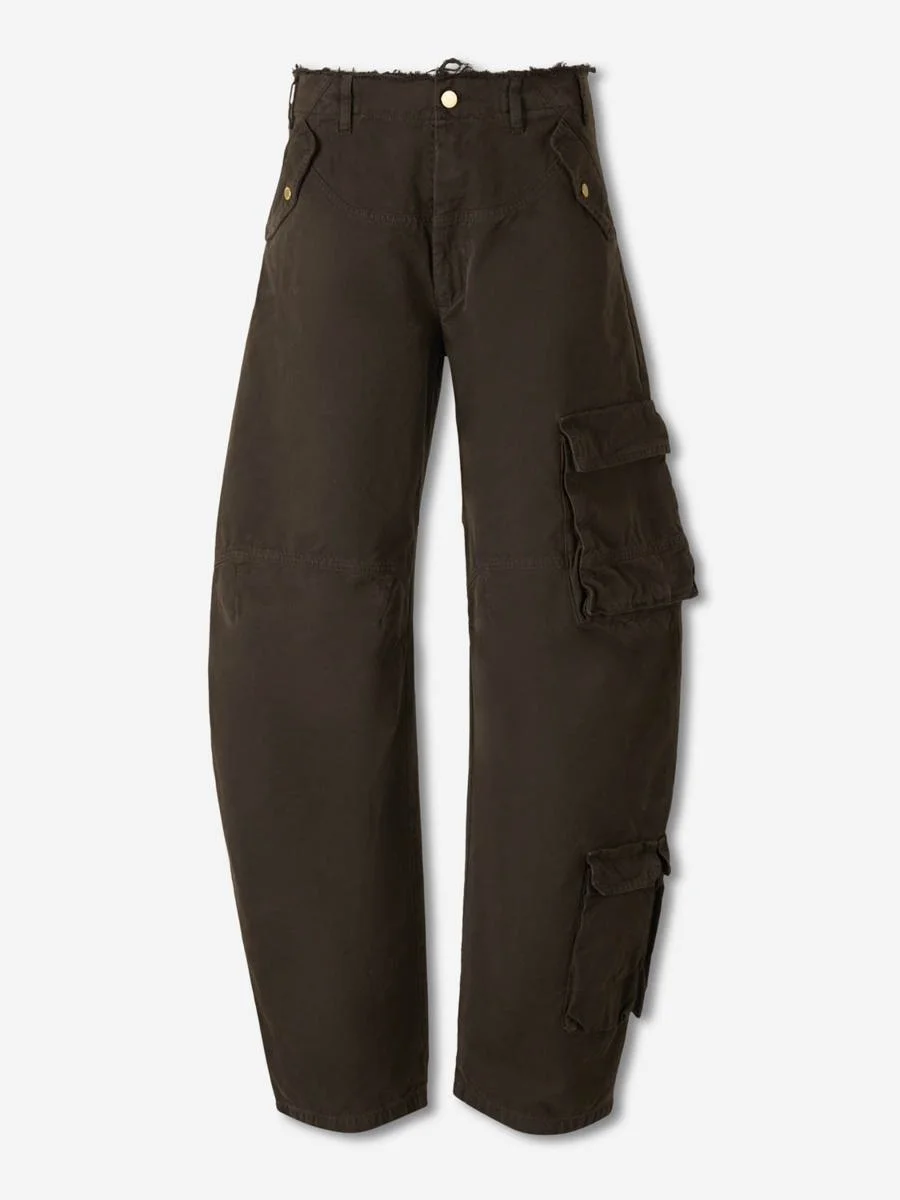 Cargo PantsCargo Pants By Darkpark• Features two side pockets with metal clasp and two back pockets. And three cargo pockets on the lower side.• Frayed waistband with belt loops.• Visible seams and frayed waistband. Leather patch with logo on the back. Cargo style pockets.• Relaxed fit.• Made from high-quality cotton.• Cargo Pants• Wide hem with visible stitching.• Closure with zipper and hidden buttons. With one visible golden button.Composition: 100% cotton. Lining: 100% cotton.Italy Gender: Women Material: 100% COTTON. LINING Color: MILITARY GREEN Made in: Italy Product ID: WTR04 FAP05_0092DARKBROWN *Import tax/duty will be calculated at checkout (If applicable)