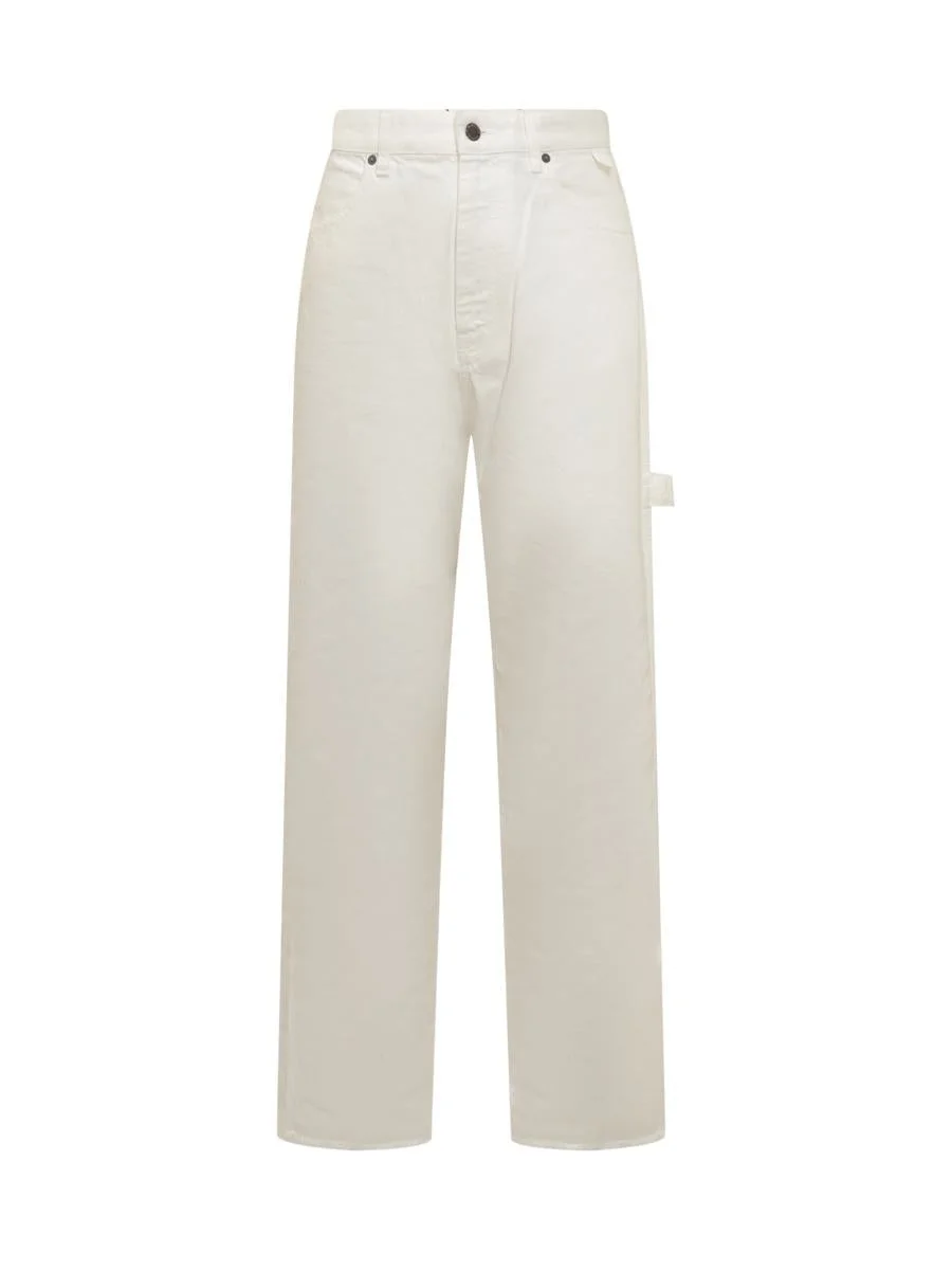 Wide leg long jeans. Zipper and button closure. Belt loops. Four pockets. Logo patch on back. Gender: Men Material: 100% COTTON Color: WHITE Made in: IT Product ID: MTR01DWB01W002 W002 *Import tax/duty will be calculated at checkout (If applicable)