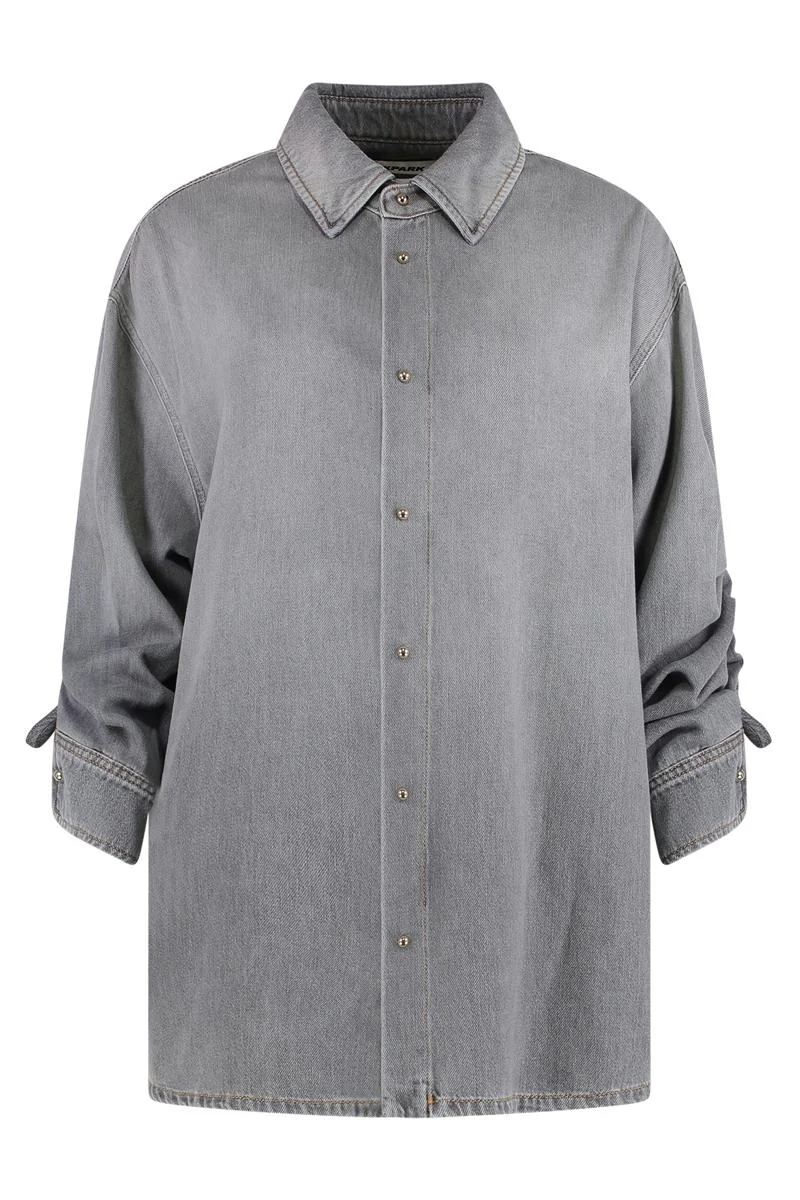 gathered-sleeve denim shirt
