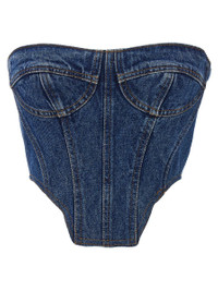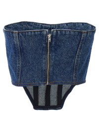 Bustier top in cotton denim with off-the-shoulder model with asymmetrical hem and back zip closure Gender: Women Material: 100% COTTON Color: BLUE Made in: Italy Product ID: PF23DK71DTINDIGO *Import tax/duty will be calculated at checkout (If applicable)