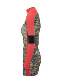 Diesel long-sleeved dress with camouflage print, high zipper collar and contrasting red inserts. Gender: Women Material: 83% VISCOSE, 17% POLYESTER Color: GREY Made in: Imported Product ID: A188840NKCN 51FA *Import tax/duty will be calculated at checkout (If applicable)