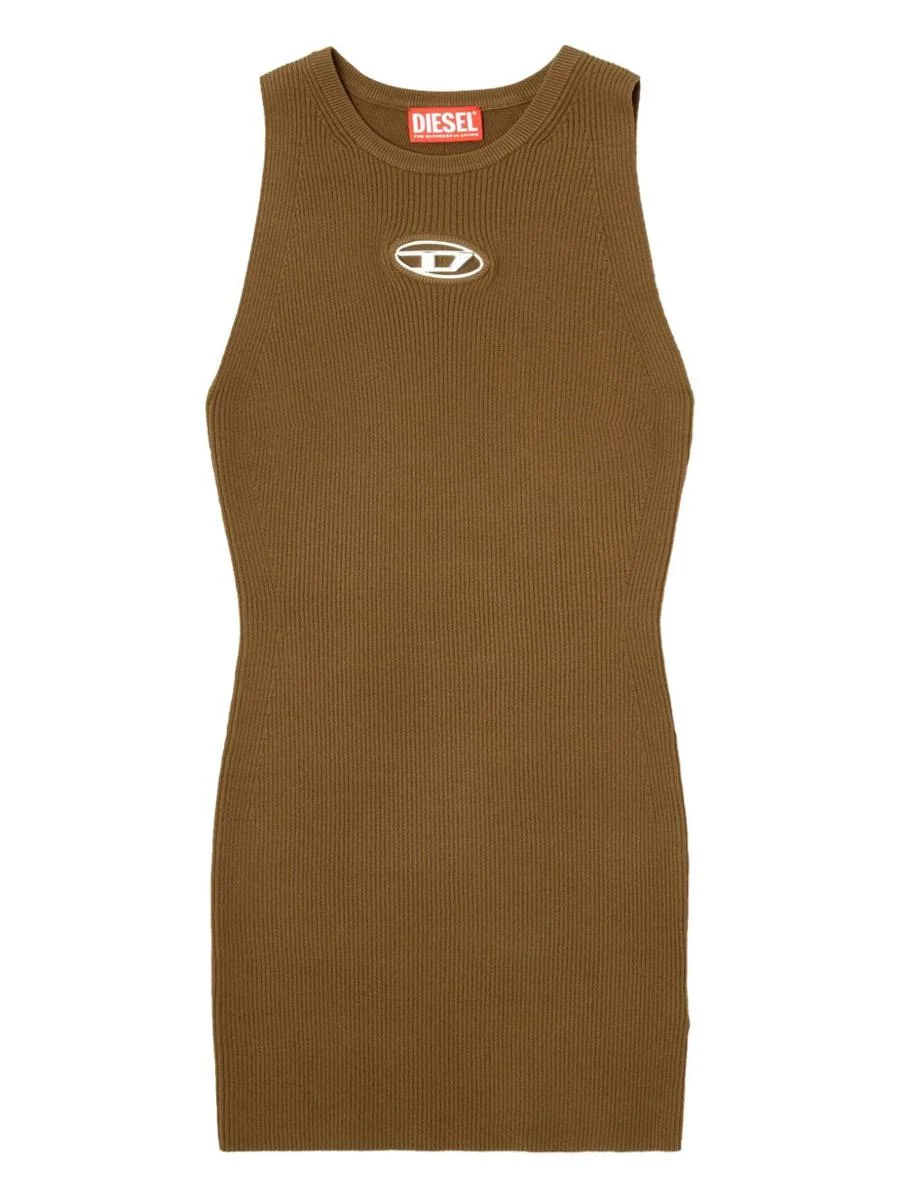 brown ribbed knit sleeveless round neck metallic logo detail Gender: Women Color: MULTICOLOR Made in: Imported Product ID: A174490DLAX5FP *Import tax/duty will be calculated at checkout (If applicable)